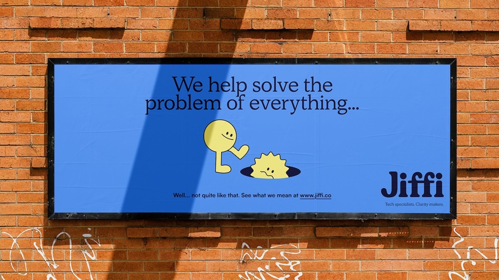 «В технологической индустрии сложился избыток инструментов и недостаток ясности», — говорит Купленд. «Вся философия Jiffi направлена против этого. Они отсеивают лишнее, перестраивают основы и снова делают операции понятными. Наша задача заключалась в том, чтобы воплотить это в бренд, который воспринимался бы как четкий, практичный и уверенный».